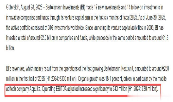 当前,Sunday隶属于当地约230人的AppLike集团。2022年,AppLike集团获得世界500强的媒体巨头贝斯塔曼集团的1亿欧元投资,贝斯塔曼旗下投资基金曾投资过摩拜单车、哈啰出行等项目。根据公开资料显示,AppLike集团在2021年实现1亿欧元营收,2024年的EBITDA(息税前利润)到达7500万欧元,2025年上半年EBITDA到达4300万欧元(去年同期为3000万欧元)。