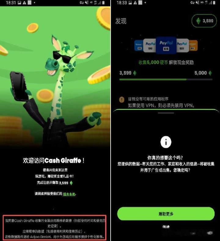 用户登录忠诚度平台后,系统会根据个性化算法向他们推荐游戏。每款游戏都包含任务,这些任务可能是限时任务,也可能是成就任务,例如达到特定等级。选择游戏后,用户需要前往应用商店下载。玩家在忠诚度平台上完成问卷调查以及对应游戏系列任务后,在平台上获取对应的平台积分。平台积分将可以兑换Paypal上的货币,以及其他如亚马逊折扣券以及各类知名实物商品等。在忠诚度平台内,游戏开发商、电商平台、品牌企业是他们的客户,虽然基本商业模式是按安装成本(CPI) 计费,但行业已逐渐转向基于广告支出回报率 (ROAS) 的定价模式。从CPI 到 ROAS 的转变释放了规模效应,因为前者是固定的,而后者是基于所获取用户的质量。玩家在这些忠诚度平台完成任务时,App内会明确指示需要玩家授权系列信息,包含玩过的游戏纪录、观看的广告历史纪录等,然后反馈给作为广告服务商的兄弟公司ADJoe。同样,这些用户通过算法之下,后续就可以反哺到Sunday旗下的游戏,甚至ADJoe旗下的合作商旗下,从而提升转化效率。
