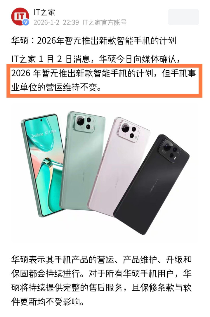 值得肯定的是,华硕在调整业务的同时,明确承诺将继续为所有手机用户提供完整的售后服务、软件更新与保修支持,展现了企业对用户负责任的态度。