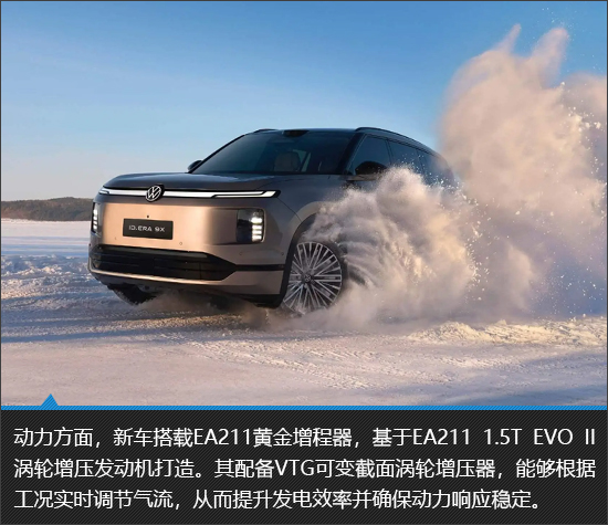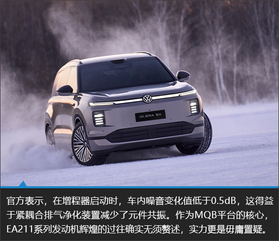 今年早些时候,首台EA211黄金增程器正式下线,作为上汽大众ID.ERA 9X的动力核心,它的表现确实吸引了极高的关注度。在官方进行的黑河极寒测试中,上汽大众ID.ERA 9X在电池低电量、环境温度零下30℃的双重极限条件下,依然能够稳定输出强劲动力,0-100km/h加速时间6.31s,相较满电状态仅衰减0.8s。