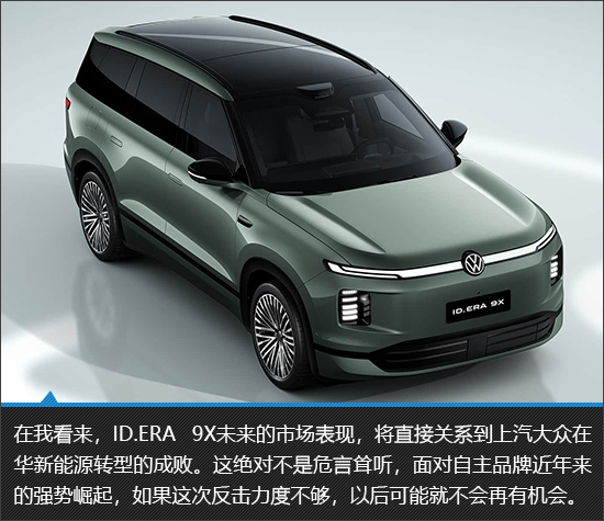 经过多年市场沉淀,上汽大众ID.ERA 9X绝对不是一款简单的跟风产品,而是大众品牌拥抱中国新能源市场、开启“合资2.0”时代的诚意之作。新车在空间、配置以及续航等方面均展现出极强的竞争力,将德系工业底蕴与中国用户需求深度融合,既保留核心优势,同时又针对性地弥补了传统合资车型的智能化短板。当然,上汽大众ID.ERA 9X能否在激烈的市场竞争中脱颖而出,除了自身扎实的产品力,还取决于上市后的定价策略、市场推广力度以及后续智能系统的持续优化升级。凭借精准定位与不俗的综合实力,它有望成为上汽大众在高端新能源市场的破局关键。